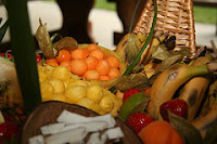Coté mise en valeur du cocktail, des miroirs ondulés, des hauteurs pour le volume, des feuilles de bananiers, de palmiers, des épices pour rappeller le thème, et pleins de petits accessoirs décoratifs en harmonie avec le thèmes des épices (mini sac en toile, raffia coloré, bamboo orange...)